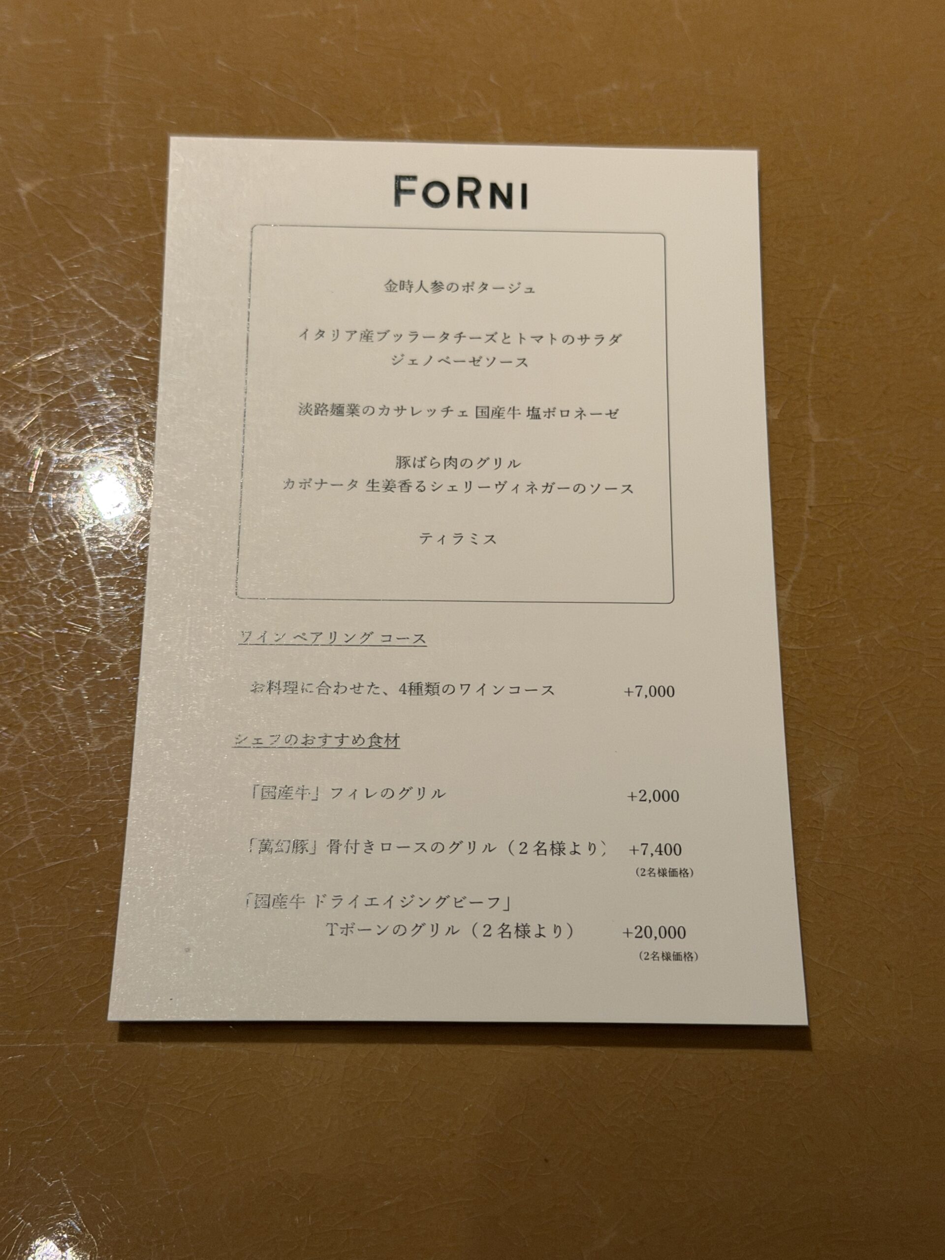 - イタリア料理「FORNI(フォルニ)」でのディナー体験